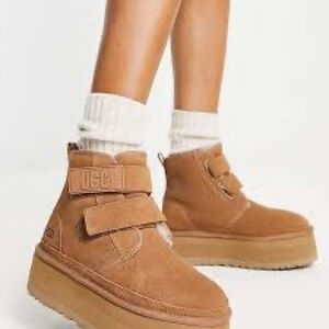 UGG Kids Neumel Double-Strap Warm-Lined Platform Booties - Chestnut color