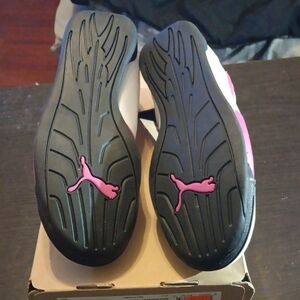 Rare Vintage Puma Fast Cat Jr shoes from the 2000's in white and pink. Features a bold pink stripe and blue logo. I was only able to find 1 other pair of this model & they were cooked. These are wearable but wear with caution. Men's 6.5 Women's 8
