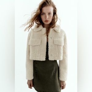Cozy teddy jacket. Soft texture. Button closure. Front pockets.