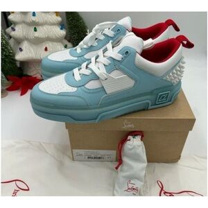 Chic sneakers with light blue and white design. Red interior and signature spikes add flair. Absolutely new never worn comes with the original box and dust bags. Originally over 1195