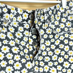 Zara Daisy Floral High Waist Denim Shorts Button Fly Size 0 Coastal Resort