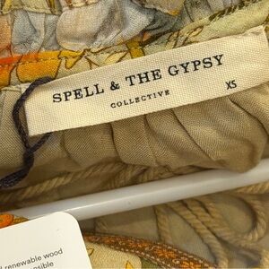 Beautiful flowy dress. Beautiful tassels at neckline and at waist. Waist is elastic ( thin so not uncomfortable . ) please look at pics to see details. I do have this in size M as well. NWOT aim a separate listing. Charming long sleeve dress with floral patterns. Features warm orange and cream tones. Perfect for a stylish look. I am a spell sister - no trades - will be listed in multiple platforms. Bundle to discuss any offers. Reasonable offers will be considered. This is from my personal collection.