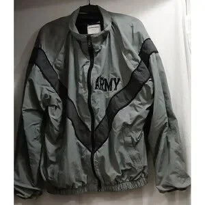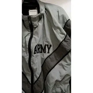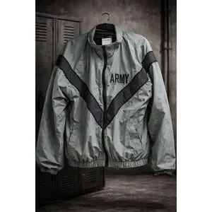 Authentic US Army IPFU (Improved Physical Fitness Uniform) jacket from the early 2000s made by UNICOR and originally issued to soldiers for PT and training use.