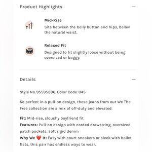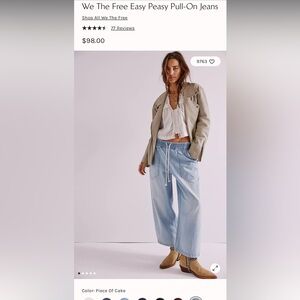 Free People We The Free Easy Peasy Pull-On Jeans in the Piece of Cake color. Size XS. Brand new, perfect condition. Plastic from tag still attached. Current style on the website for full price. Super cute and lightweight, these are the jeans you'll reach for all year. Stretchy waistband, cute rope front tie to tighten, deep pockets, perfect wash. So versatile- rock these with chunky sandals, flip flops, high top sneakers and in the cooler months throw on your favorite combat boots. 🔥