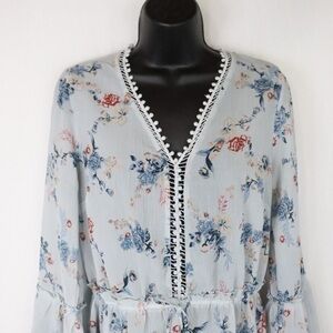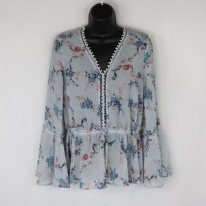 🦩 AMANDA GREEN Bohemian Trumpet Sleeve Floral Semi Sheer Blouse (🦩2 for $25)