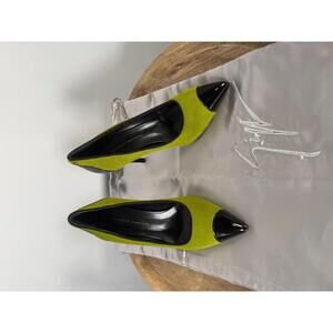 NWB Giuseppe Zanotti Lime Green Suede Black Patent Cap Toe Pointed Pumps Size 5