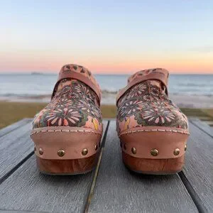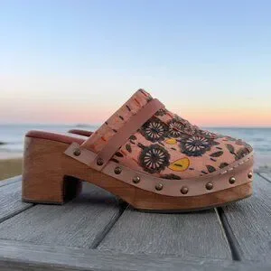 free people clogs, boho shoes, heeled clog, slip on shoes, going out shoes, wooden clogs, cedar mules, studded