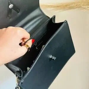 Elevate your style with this stunning Valentino Orlandi Vegan Leather Purse. Crafted in Italy, this shoulder bag features a sleek black exterior made of high-quality leather. The bag depth is 3 inches, making it perfect for carrying all your daily essentials.