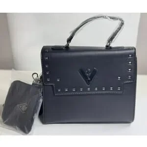 NEW ORLANDI VALENTINO Black Gunmetal Silver Stud Studded Crossbody Bag Purse