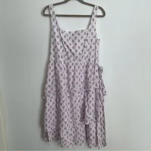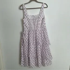 J. Crew Lavender Cotton Sz12 Asymmetrical Floral Ruffles Tiered Dress Cotton NWT