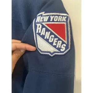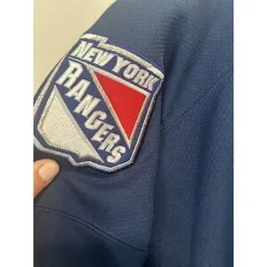Show your support for the New York Rangers with this vintage PRO PLAYER hockey jersey. Featuring the iconic Statue of Liberty design, this unisex adult jersey is perfect for any fan of the National Hockey League (NHL). Made with high-quality materials, this blue jersey is a size L and ideal for regular season games. Represent your favorite team with this officially licensed product and be ready to cheer them on during the next game. Whether you're watching from the stands or playing on the ice yourself, this jersey is a must-have for any true fan of the New York Rangers.