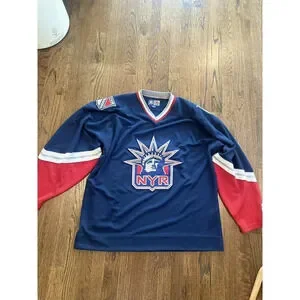 VINTAGE NEW YORK RANGERS NYR PRO PLAYER STATUE OF LIBERTY HOCKEY JERSEY SIZE XL