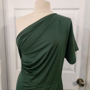 Step out in style with this elegant one-shoulder green dress. Perfect for any occasion, this dress offers a flattering fit and a sophisticated look.