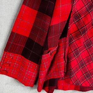 Keywords: plaid, patchwork, tunic, womens, xl, red, long sleeve, button, pocket, casual, fall, winter, unique, designer, boho