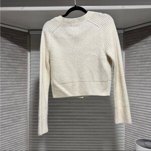 The Abercrombie & Fitch size S Cropped Knit Cardigan is a stylish and classic piece perfect for a preppy or Y2K-inspired look. This ivory cardigan features faux pearl buttons and a solid pattern, with long puff sleeves and a crew neckline. The cropped style adds a modern touch, while the vintage feel embodies a timeless elegance. Made from knit fabric, this cardigan is a versatile addition to any woman's wardrobe, suitable for school, a college campus, or a more sophisticated occasion.
