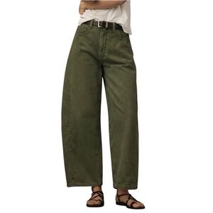 Pilcro Women’s 28 Barrel Pants Olive The Kenna Mid Rise Heritage Wide Leg Green