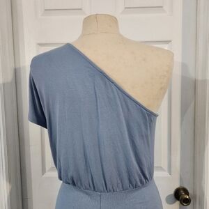 This elegant one-shoulder dress in a soft blue hue is perfect for any occasion. Its stylish design offers a flattering fit and a touch of sophistication.