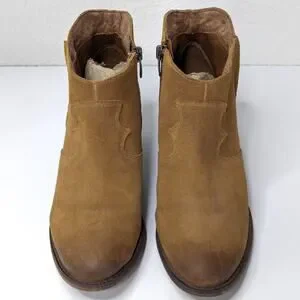 Marc Fisher Stefani Ankle Bootie Boot Suede Leather Brown Western Cowboy Tan 6