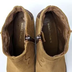 Marc Fisher Stefani Ankle Bootie Boot Suede Leather Brown 8 Western Cowboy Tan