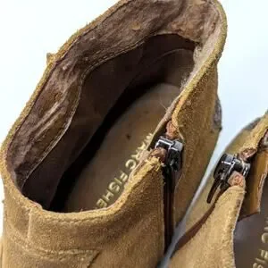 Some light wear to suede. Inner lining of ankle is flaking. Inner right heel is scuffed. See Photos.