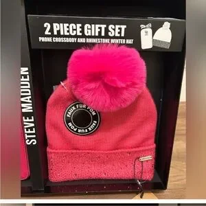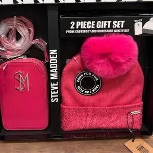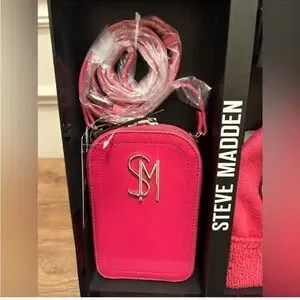 Chic Steve Madden set with a fuchsia phone crossbody and matching rhinestones.