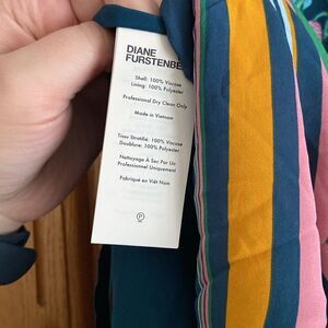 Diane Von Furstenberg Denver Tropical Floral Silky Midi Asymmetrical Hem Summer Skirt. New with tag. Size: 10 - see measurements below. Color: jardin eclipse multi. Design: asymmetrical hem. Left side seam hidden zipper with hook - and - eye closure. Dry clean only. Shell: 100% viscose. Lining: 100% polyester. No stretch. Measurements approximately while laying flat: Waist: 14”. Length: 35” the longest. Hips: ( 8” below waist) : 20.5”. Perfect skirt for summer/ tropical vacation! Reasonable offers welcome. Smoke free and pet free home.