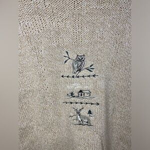 Vintage made in Canada. This is so cute and cozy, with an adorable “hidden” stitching of a cabin and others. Very adorable!! 70% Cotton. Was a collab with Parkhurst. Has one small white splotch on front that might be paint but looks like it’s part of the stitching and not noticeable - it’s in the photos. This sweater is quite rare and I have not come across another one like it