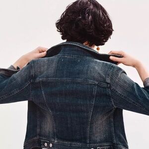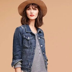 Classic Pilcro Denim Jacket - Dark wash with the perfect amount of stretch for easy movement and all-day comfort. Timeless silhouette that goes with literally everything.