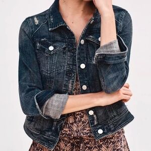 Pilcro & The Letterpress Dark Wash Distressed Denim Jacket Size M