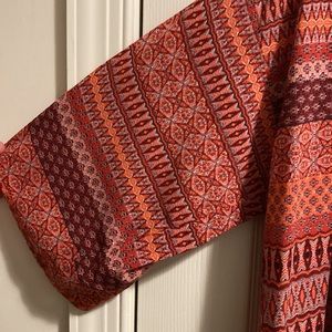 Used condition, patterned with tassels along the bottom. No closures on the cardigan, worn open. 3/4 length sleeves. Closet kept, smoke free home!