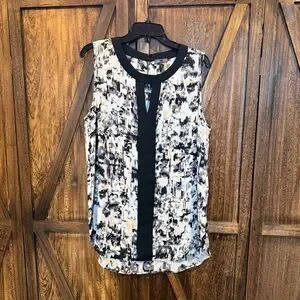 Vince Camuto Black & White Abstract Sleeveless Blouse - Size L