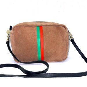 Clare V Marisol Stripe Camel Suede Crossbody Bag