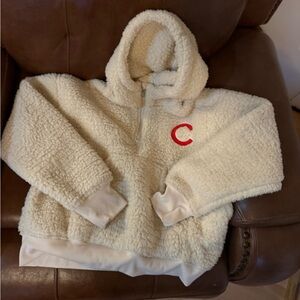 Stay warm and in style with this cozy sherpa hoodie featuring a bold red Cubs detail.