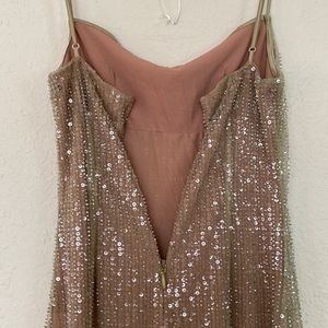 The Alondra dress from House of CB is delicately made from a shimmering hand beaded fabric and backed in a curve creating cafe au lait powermesh lining for a gorgeous contrast, hugging every curve for a snatching fit as it falls to an ankle grazing length.