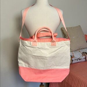 NWT Victoria's Secret Pink and Cream 2 in 1 Beach Tote with Insulated Cooler bag