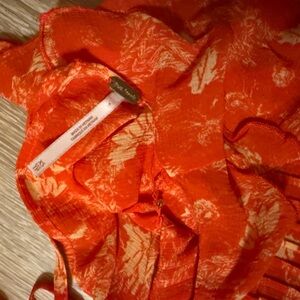 Free people two piece dress, with under layer tan slip dress. 18” pit to pit This beautiful Free People dress features a round neckline and a tie back closure. The dress is perfect for any occasion, whether it's a casual day out or a fancy party. The knee-length swing dress has long sleeves and is made of 100% polyester, making it comfortable and easy to wear. The dress is machine washable and has a lovely floral pattern in orange and cream. The dress is perfect for any season, whether it's winter, summer, fall, or spring. The pleated accents and stitch pleating add a bohemian touch to the dress, making it perfect for those who love the hippie and bohemian style. The dress is made in Vietnam and is perfect for women who want to look stylish and fashionable.