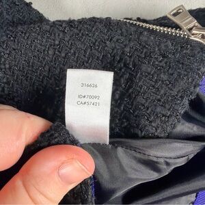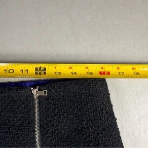 Elevate your office wardrobe with this chic Loft (Ann Taylor) tweed skirt. Featuring a sophisticated black textured weave, this skirt is accented with two functional front zipper details that add a modern edge to a classic silhouette.
