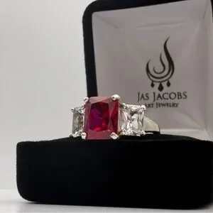 6ctw Lab Ruby Three Stone Ring White Sapphire Side Stones Size 7
