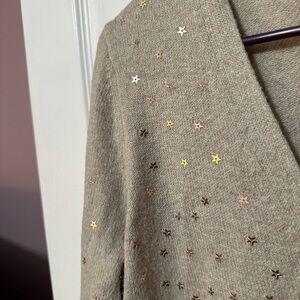 Loft Long Sleeve Beige Cardigan Covered with Gold Star Sequins Size Medium