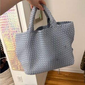 Stylish woven tote by Naghedi. Light blue color. Perfect for everyday use.