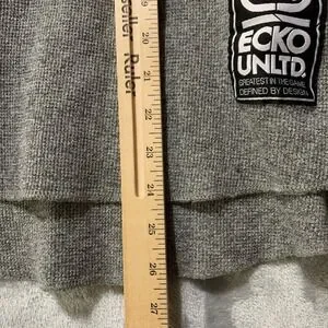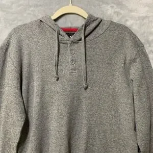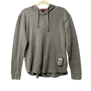 Ecko Unltd Hoodie Mens Gray Large Cotton Blend Pullover Thermal Button Logo