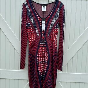 BCBGMaxAzria Red and White Bodycon Dress Sleeveless Scoop Neck