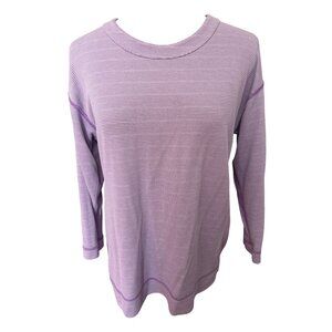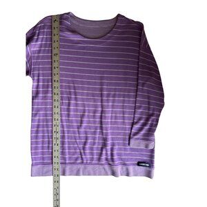 Lands End Reversible Purple Striped 3/4 Sleeve Top Size Medium Stretchy Casual