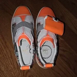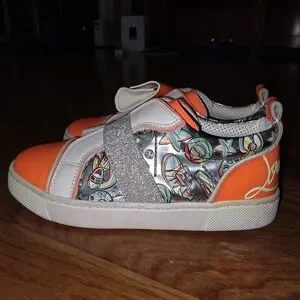 Christian Louboutin Kids' Orange and White Sneakers with Silver Accents