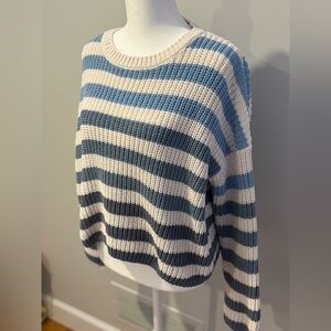 Chic striped sweater with blue and cream tones. Ideal for casual wear. Very comfortable and soft.