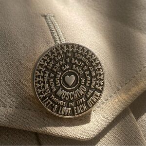 Purchased in France. Gorgeous Cheap and Chic by Moschino beige trench-style jacket! This timeless Italian designer piece has a sophisticated tailored fit with classic collar, flap pockets, ornate gold buttons, cinched belt for waist definition, and long sleeves—perfect for elevating everyday looks or layering in transitional weather. Minor light staining (barely noticeable, photos show details) and one missing button (easy to replace or style as-is; doesn’t affect wearability). Otherwise excellent vintage condition—structurally sound, no major flaws, great shape! A fun, bold Moschino staple with that signature playful elegance. Affordable luxury find! #Moschino #CheapAndChic #MoschinoCheapAndChic #DesignerJacket #BeltedJacket #BeigeJacket #GoldButtons #VintageMoschino #ItalianDesigner #PoshmarkFashion #FallStyle #DesignerOuterwear #TrenchJacket #LuxuryPreowned