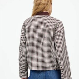 Inspired by the classic silhouette of a bomber jacket, this elevated layer taps into preppy vibes. It features drop shoulders, angled front welt pockets and a perfect-for-fall yarn-dyed plaid.