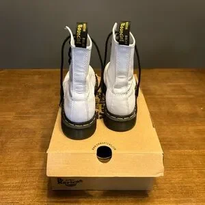 Classic white boots featuring black laces. Signature Dr. Martens style. A few marks on the front, otherwise excellent used condition! Seems to have only been worn a couple of times. Comes with box.