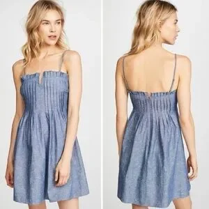 Madewell Chambray Pintuck Cami Ruffle Chambray Mini Dress Size 4