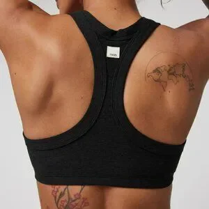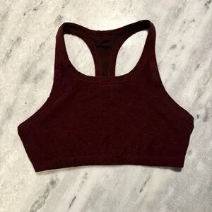 Vuori Elevation Racer Bra, color is Raisin Heather, a gorgeous heather maroon and the buttery soft Vuori fabric we all know and love! Worn 3 or 4 times, machine washed and air dried - like new. Just didn't get quite the right size for me, it's ready for a new home!